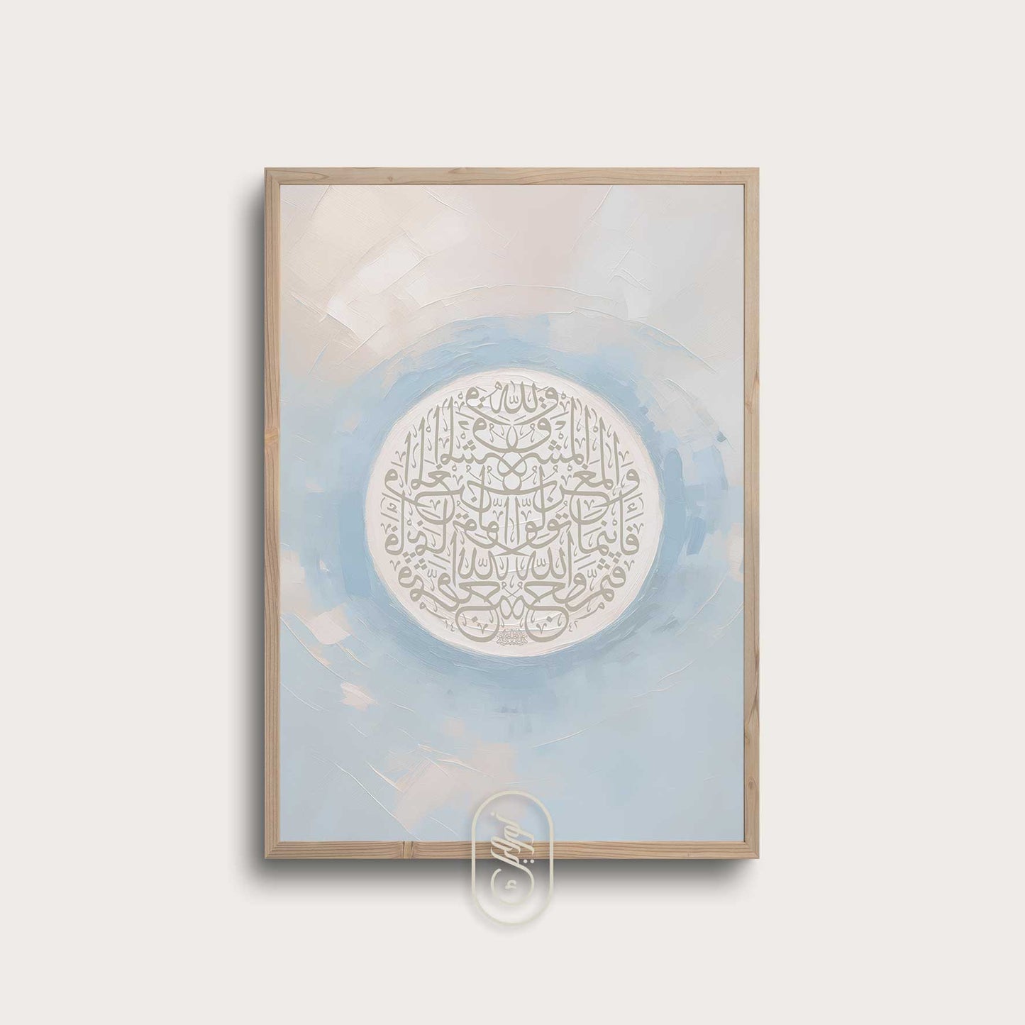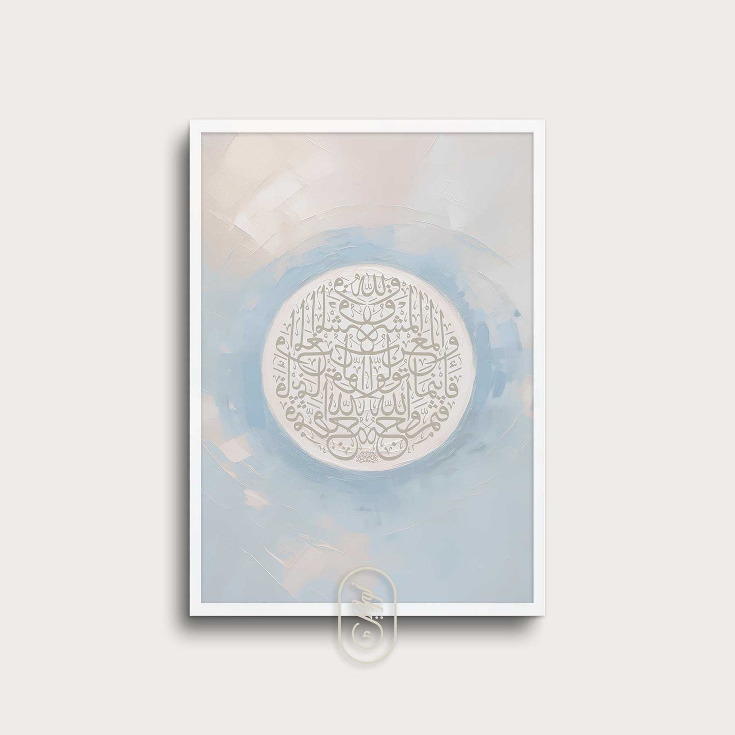 Modern Beige & Blue Abstract | Round Al Baqara 115