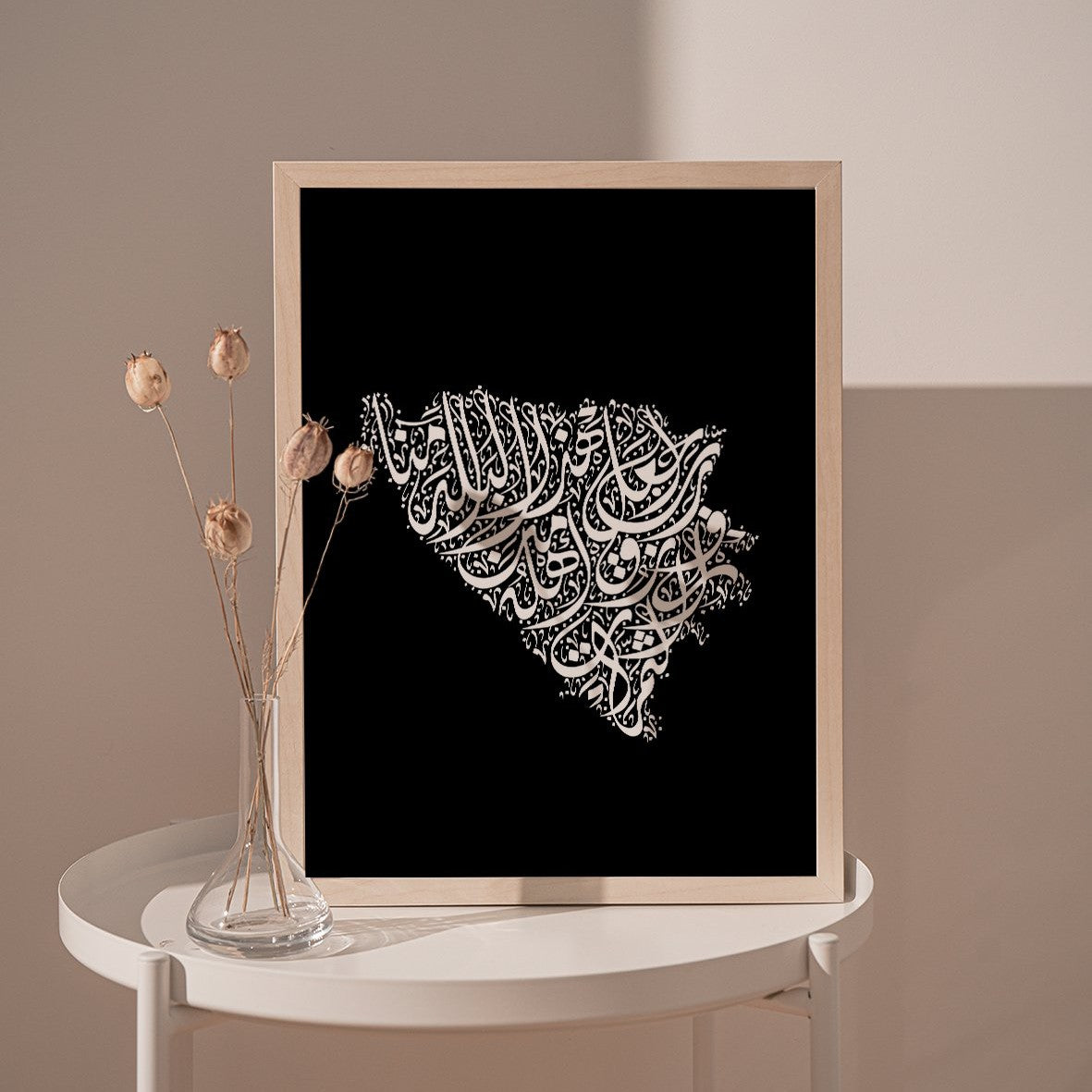 Beautiful Calligraphy maps by our Syrian Calligrapher Mr. Ali. The Arabic words included in this map read: