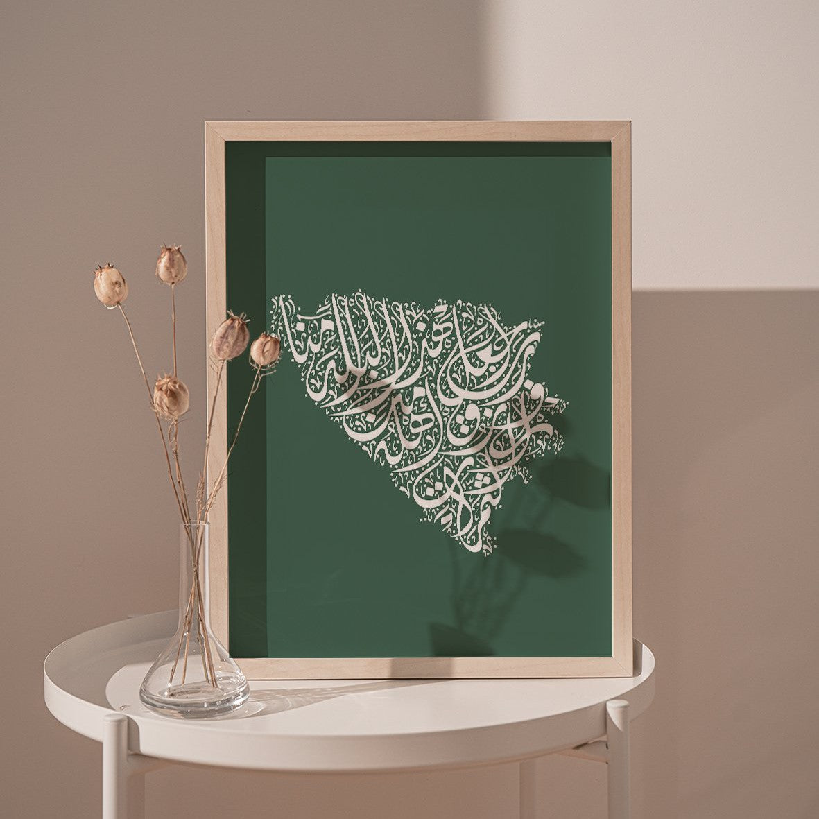 Beautiful Calligraphy maps by our Syrian Calligrapher Mr. Ali. The Arabic words included in this map read: