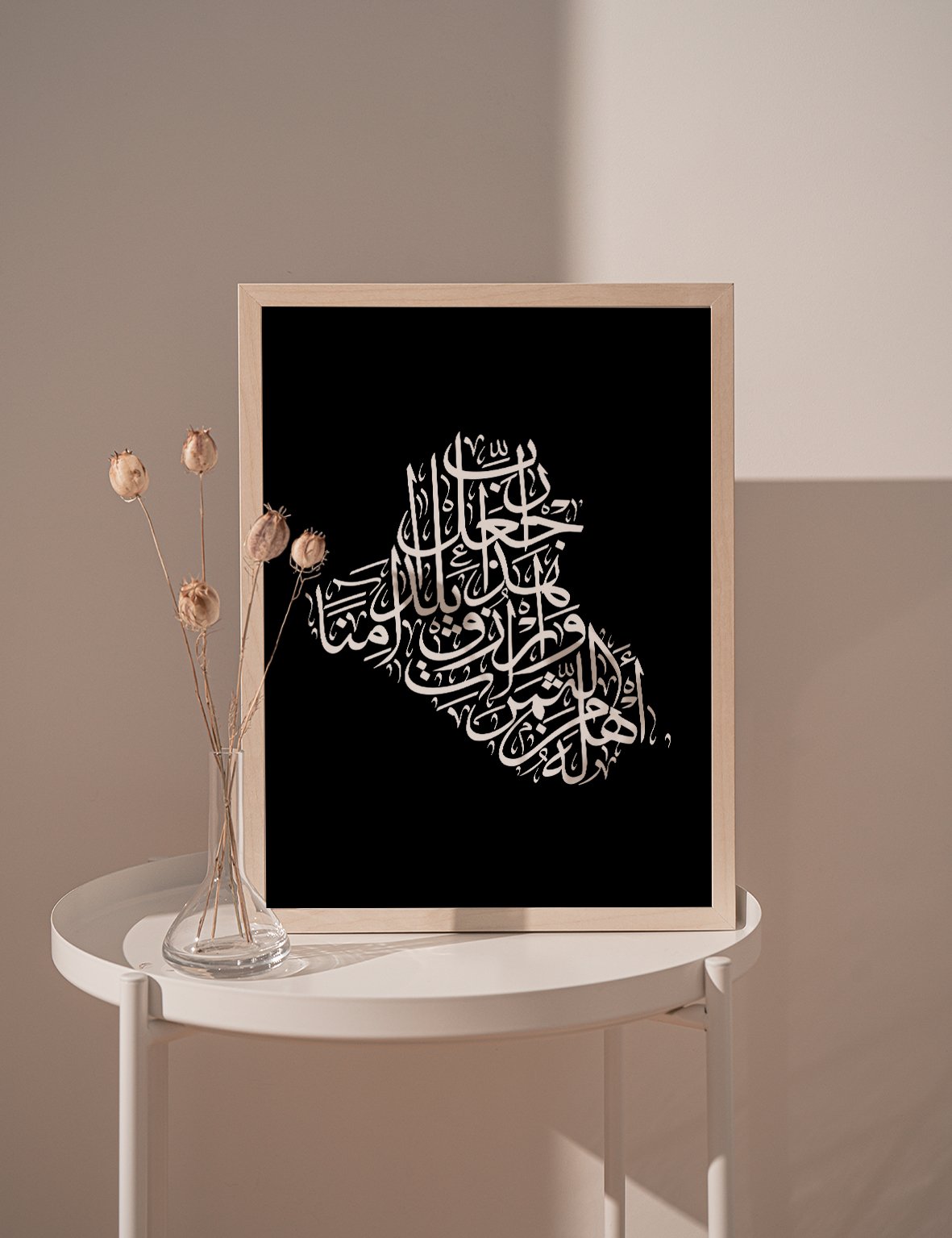 Beautiful Calligraphy maps by our Syrian Calligrapher Mr. Ali. The Arabic words included in this map read: