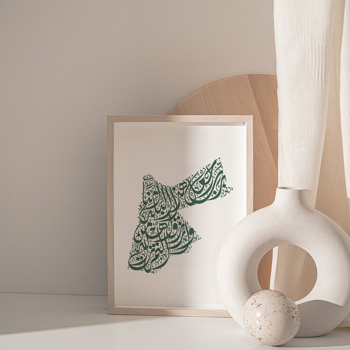 Beautiful Calligraphy maps by our Syrian Calligrapher Mr. Ali. The Arabic words included in this map read: