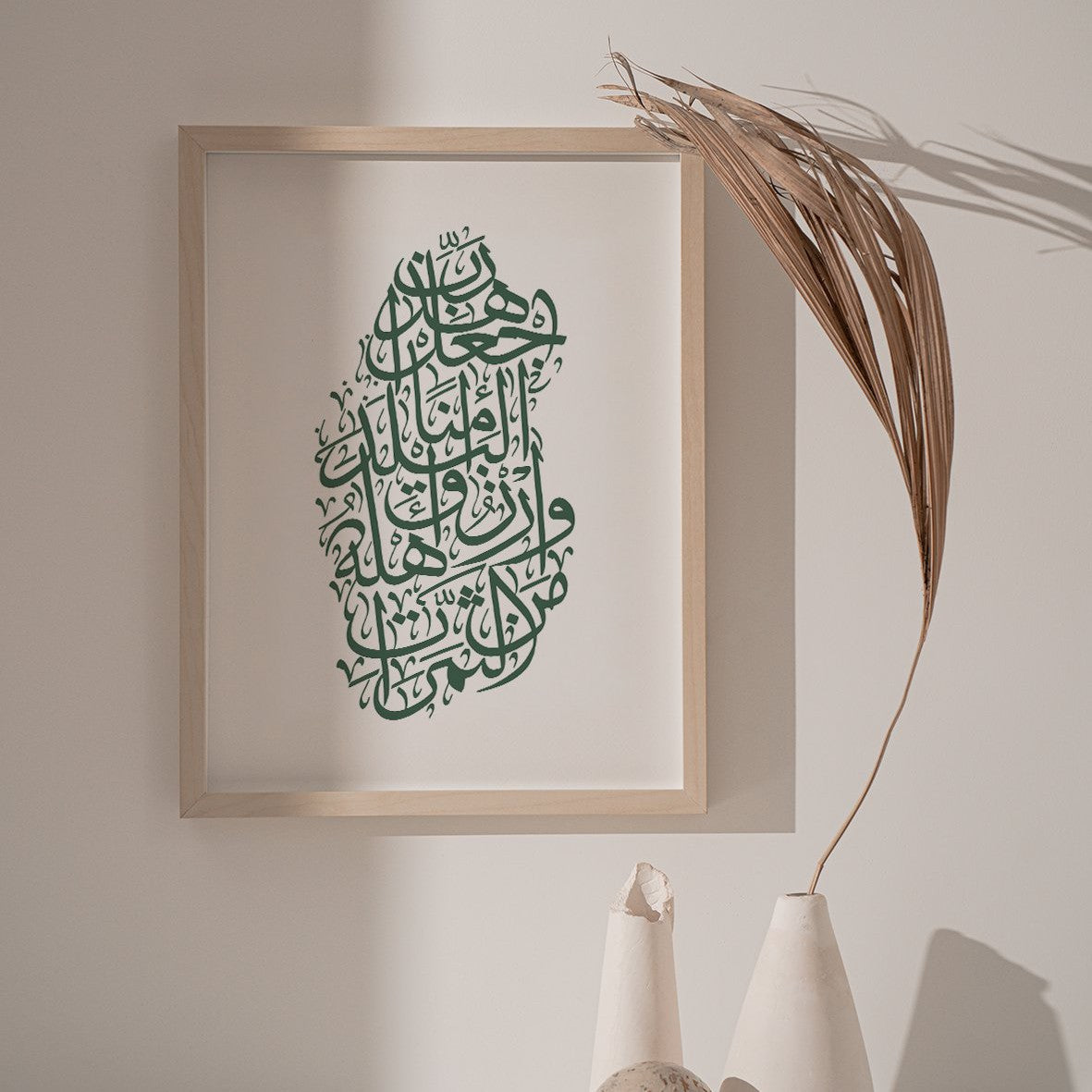 Beautiful Calligraphy maps by our Syrian Calligrapher Mr. Ali. The Arabic words included in this map read: