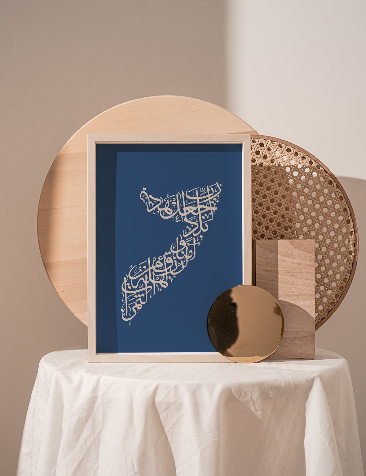 Beautiful Calligraphy maps by our Syrian Calligrapher Mr. Ali. The Arabic words included in this map read:
