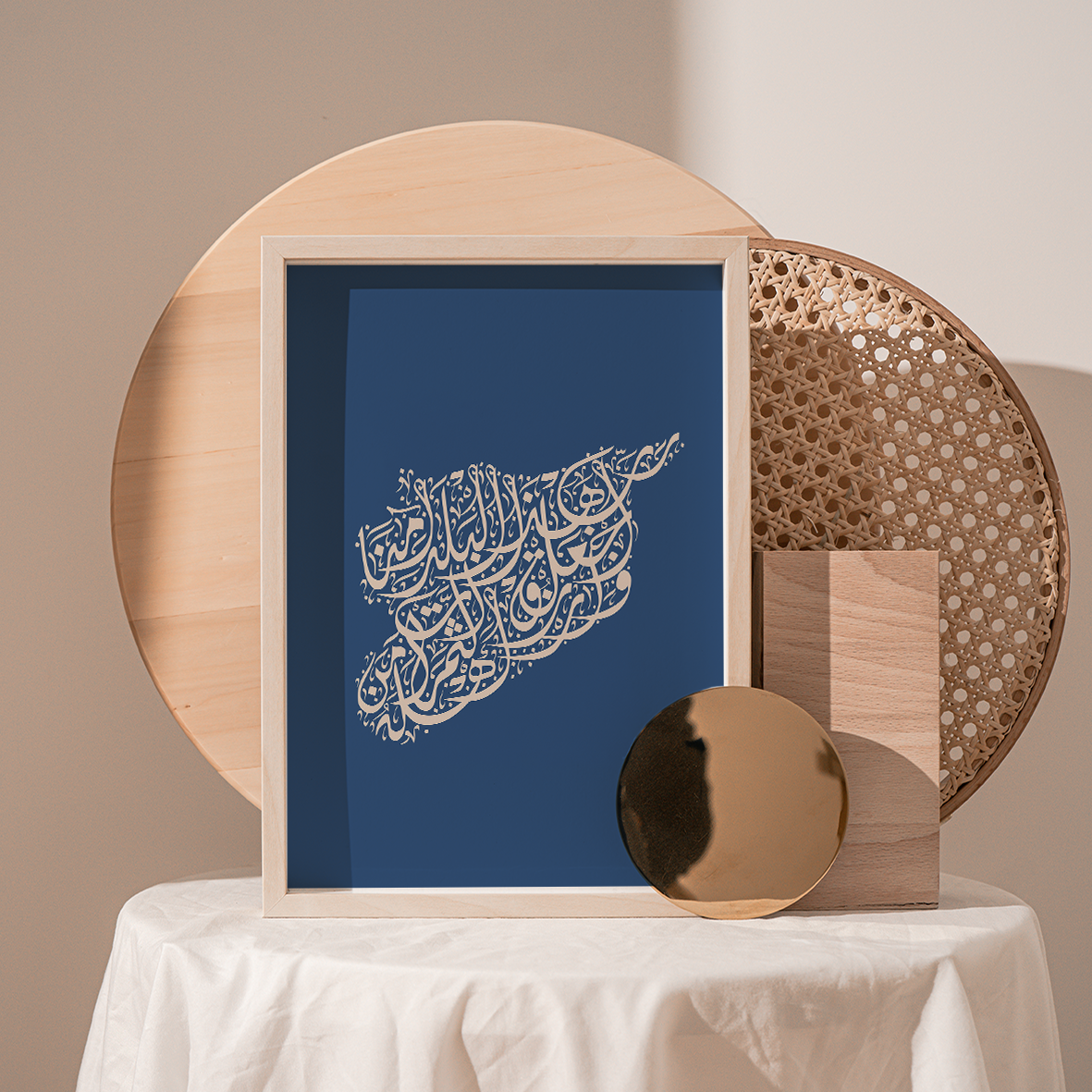 Calligraphy Syria, Vertical, Blue / Stone