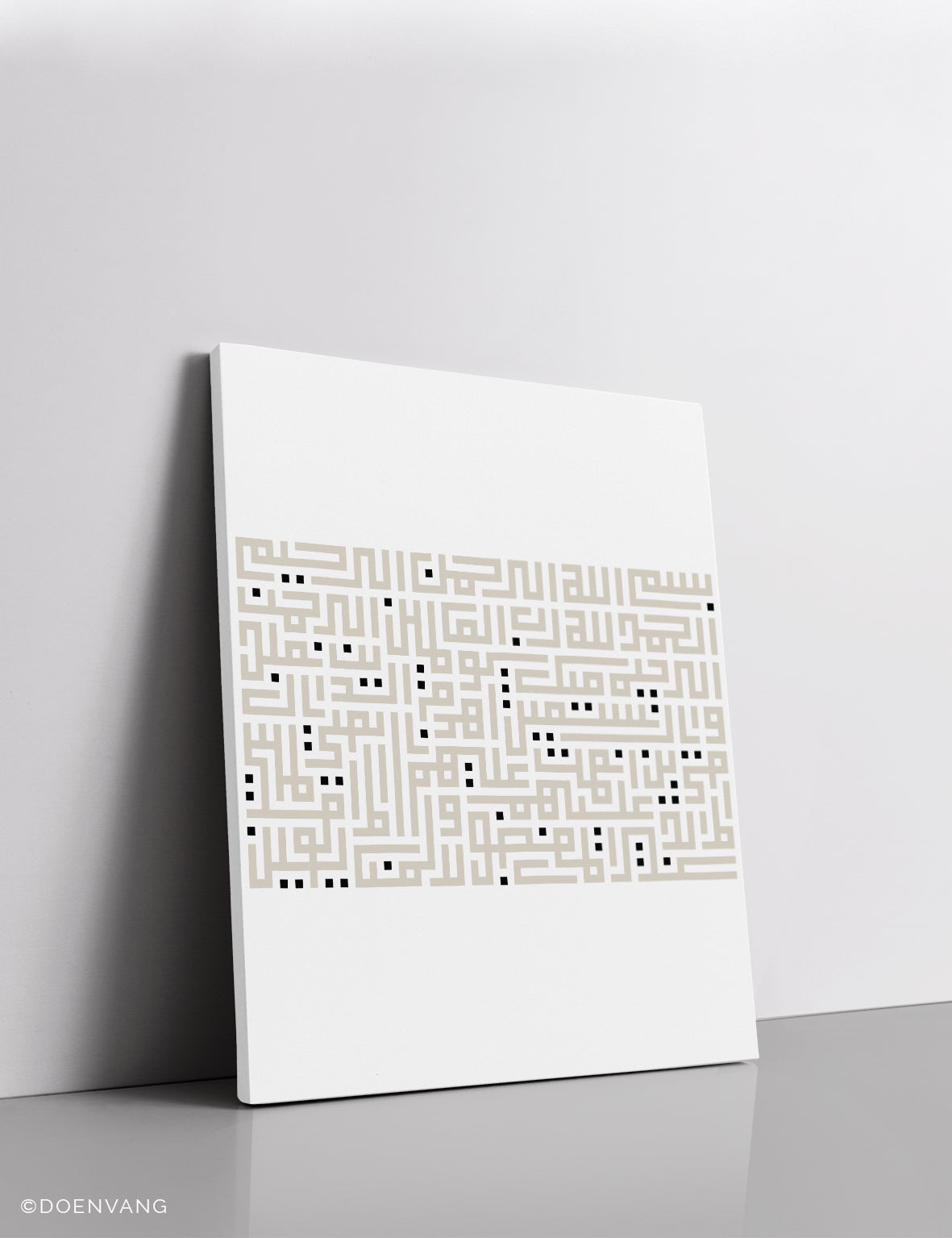 CANVAS | Kufic Al Fatiha, Beige on White, Vertical