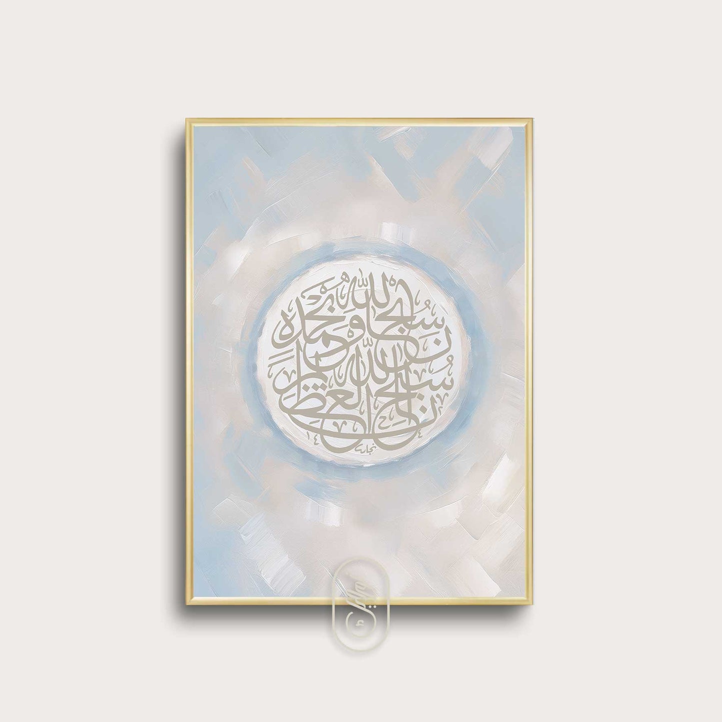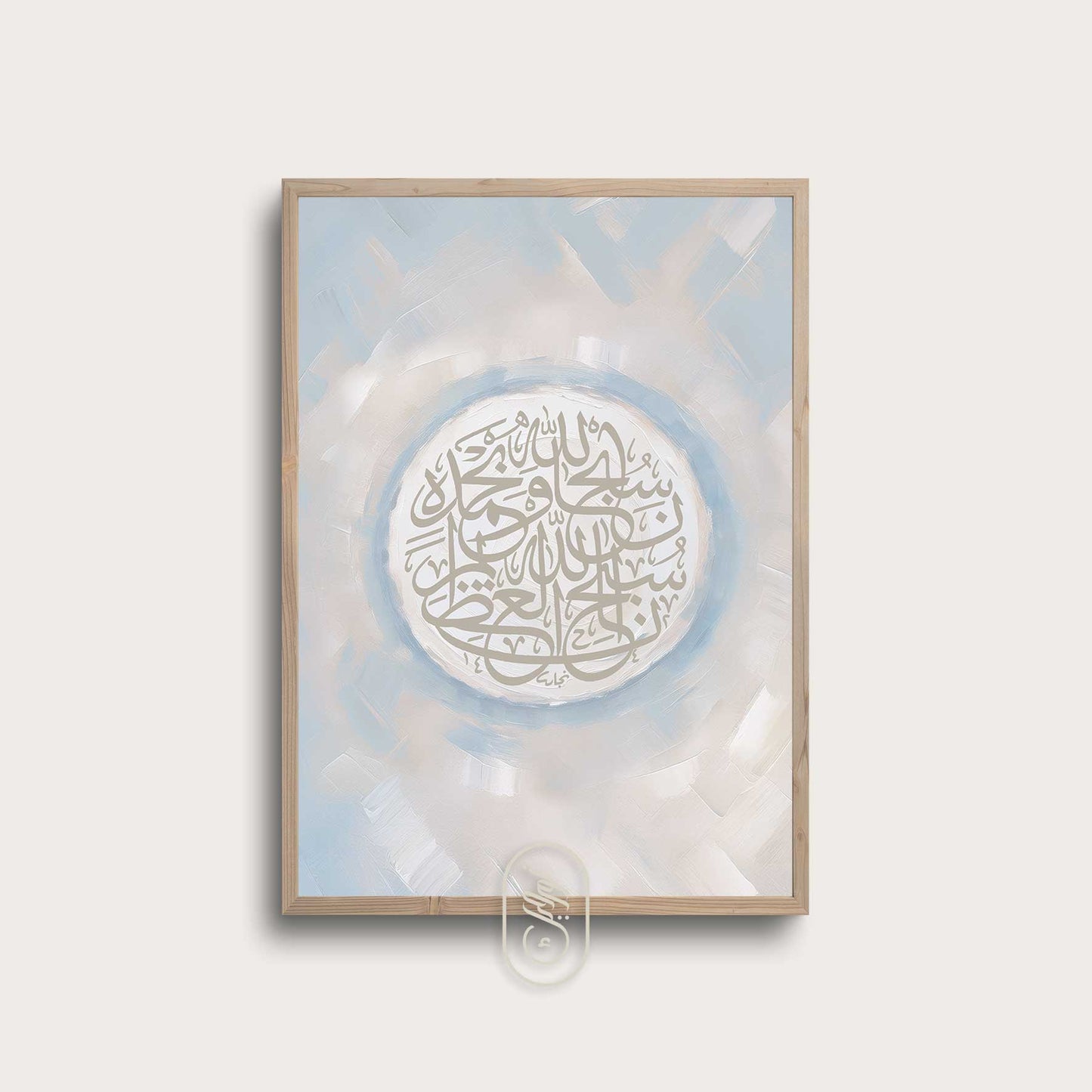 Modern Beige & Blue Abstract | Round SubhanAllah Wa Bihamdih