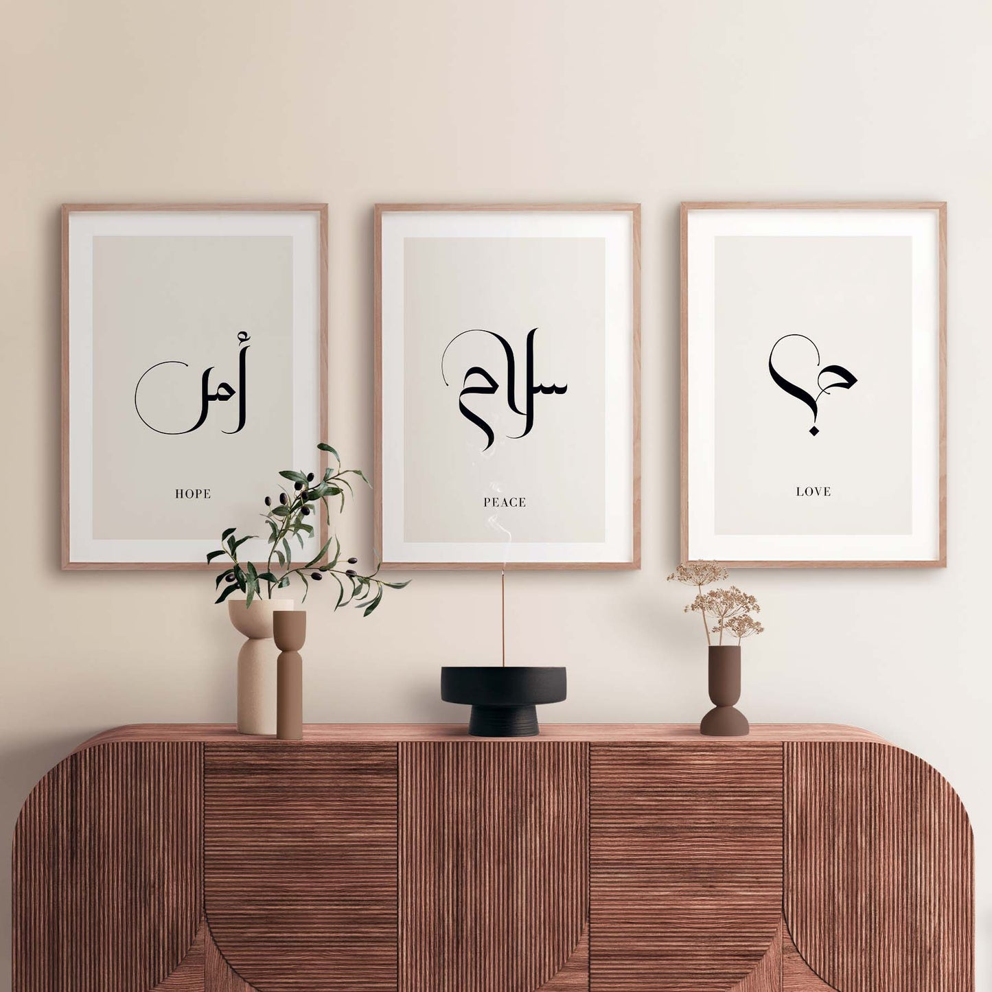 Simple Calligraphy Beige, Hope, Peace, Love | 3 Large